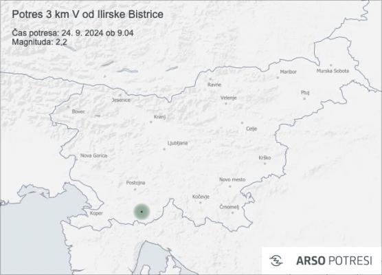 Tudi drugi potres z magnitudo 2,2 je zatresel tla v bližini Ilirske Bistrice. Po prvih podatkih so potres čutili prebivalci Ilirske Bistrice, Knežaka in okolice.
