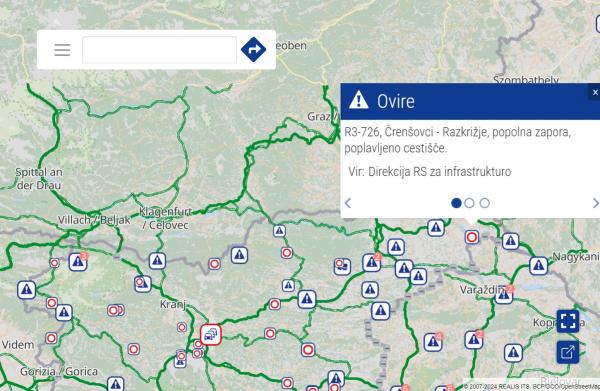 Direkcija RS za infrastrukturo opozarja voznike, naj se izognejo temu območju in spremljajo uradne prometne informacije za posodobitve.