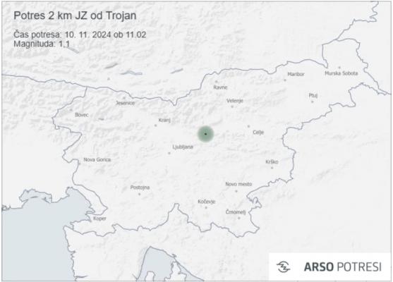Danes, 10. novembra 2024, ob 11.02 po lokalnem času je bil zaznan potres magnitude 1,1 z epicentrom 2 km jugozahodno od Trojan. Potres se je zgodil na globini 30 kilometrov in je bil zabeležen s strani seizmografov državne mreže potresnih opazovalnic.