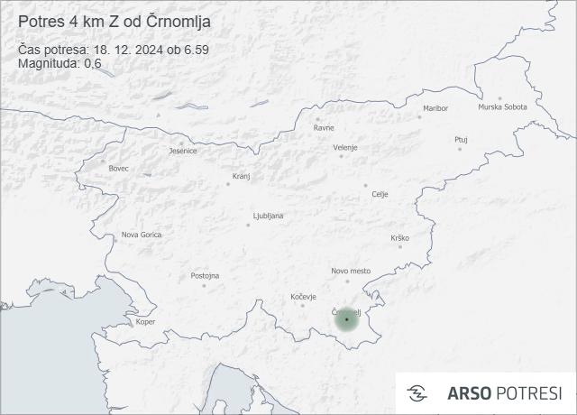 Po prvih podatkih je bilo žarišče potresa 4 kilometre zahodno od Črnomlja. Potres z magnitudo 0,6 je bil zabeležen ob 6.59 uri.