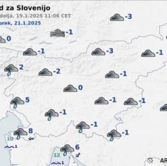 Danes, v ponedeljek, 20. januarja, nas po Sloveniji čaka pretežno oblačen dan. Po nižinah v notranjosti bo megleno ali s prisotno nizko oblačnostjo, napoveduje ARSO.