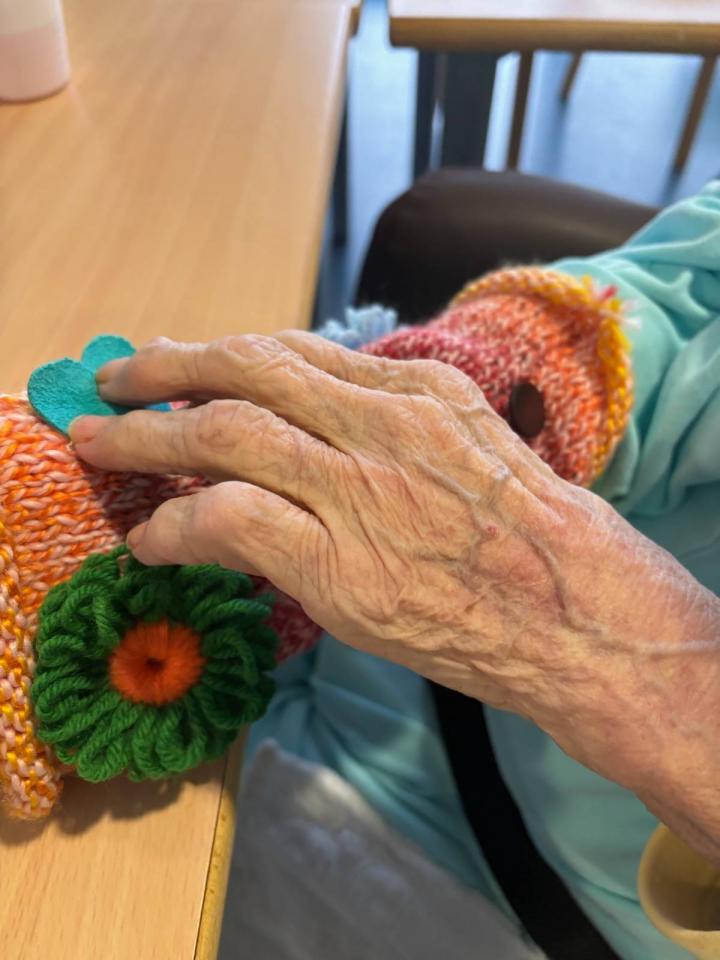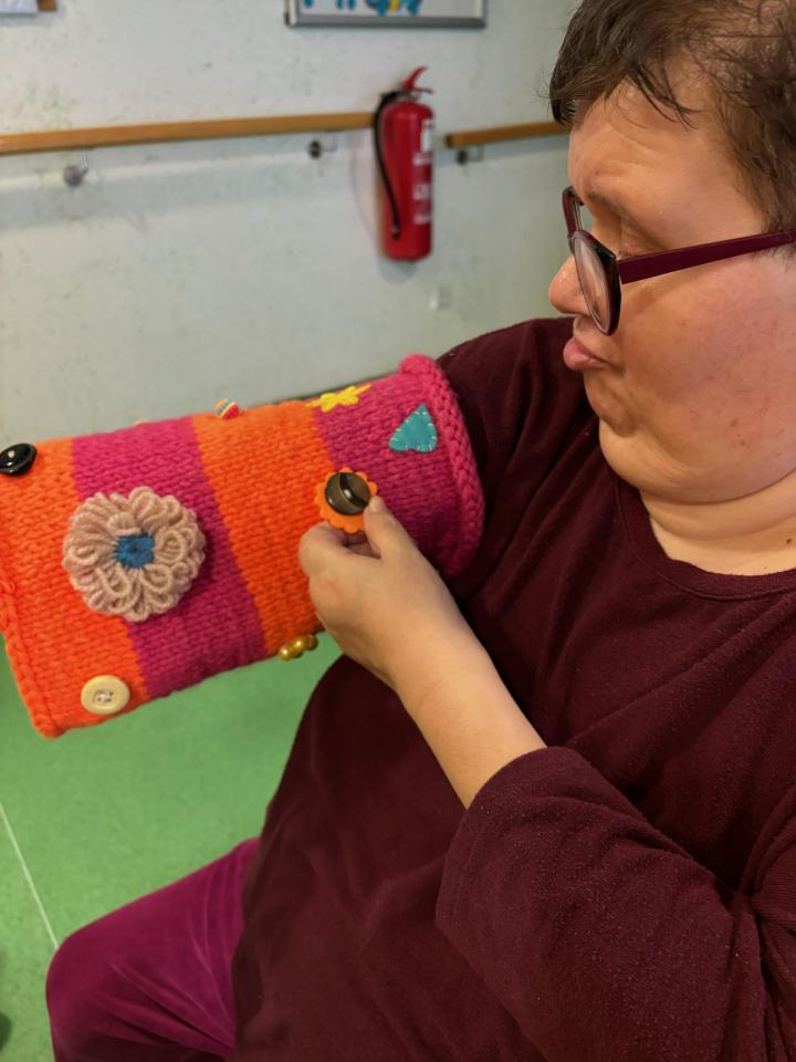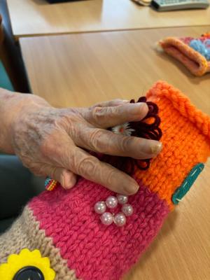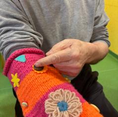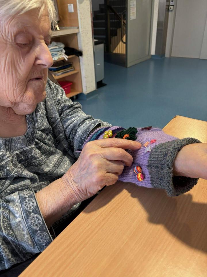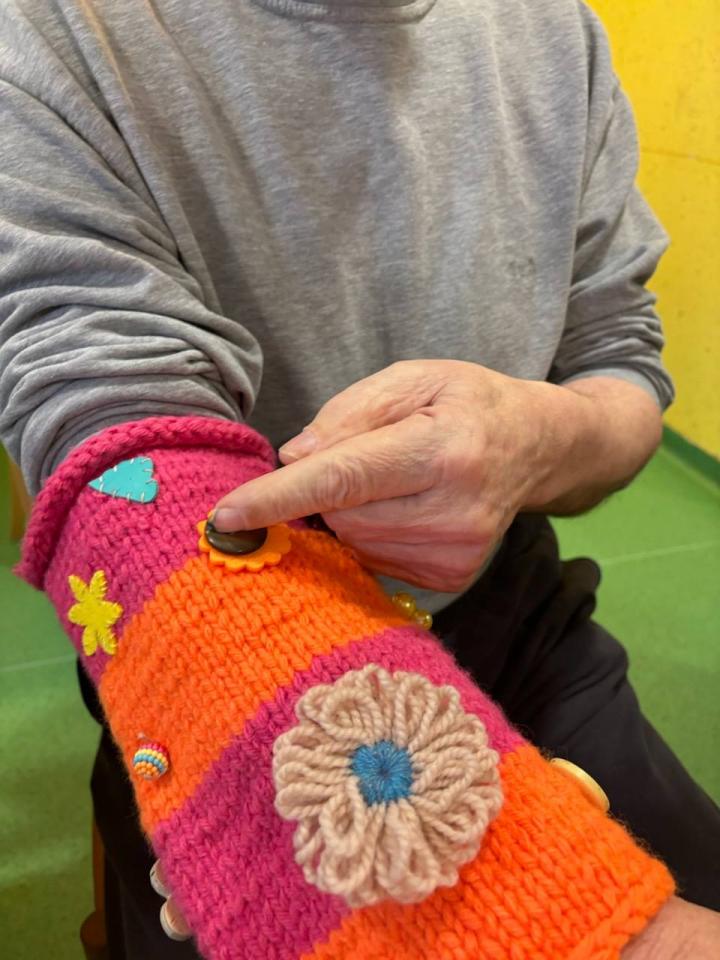 Rokavčki so izdelani iz volne in opremljeni z gumbi, cofki ter različnimi zankami, ki s svojo teksturo omogočajo senzorično stimulacijo. Ob tipanju in stiskanju se ohranja ter krepi občutek za dotik, kar pozitivno vpliva na dobrobit uporabnikov.
