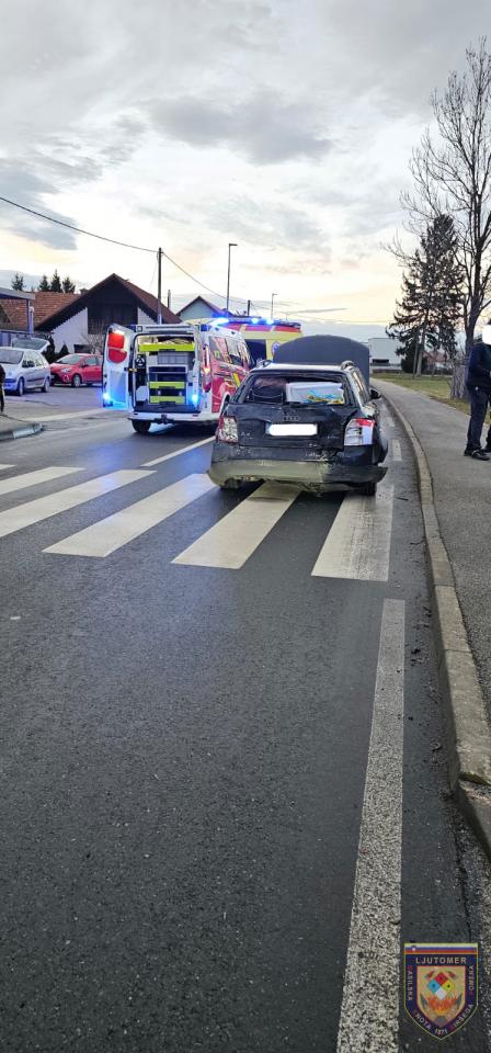 V naselju Križevci pri Ljutomeru so policisti včeraj obravnavali prometno nesrečo, v kateri sta dve osebi utrpeli lahke telesne poškodbe. Prometno nesrečo je povzročila voznica tovornega vozila za dostavo hitre pošte.