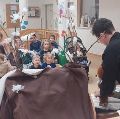 V sklopu praznovanja kulturnega praznika pa so vzgojiteljice pripravile tudi gledališko igro Mali in velike medo. Dramske igre izvajajo vzgojiteljice in pomočnice vzgojiteljic. Iščejo vsebine, ki so primerne za predšolske otroke ter prilagodijo tudi izvedbo.