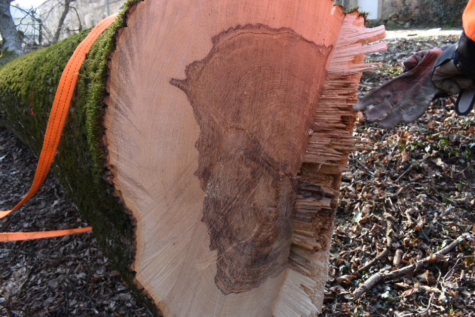 Ob pregledu drevesa leta 2024 so strokovnjaki ugotovili, da vrh krošnje trohni, kar se je ob podiranju tudi potrdilo. Izurjen sekač Martin Žökš je poskrbel, da je drevo padlo varno in pri tem ni poškodovalo drugih dreves.