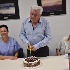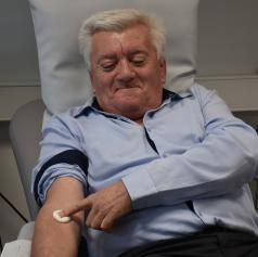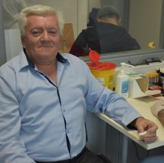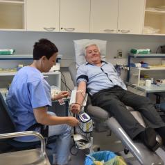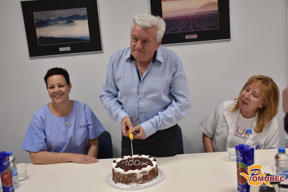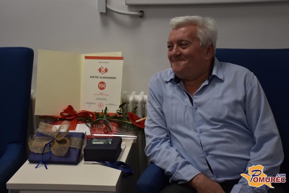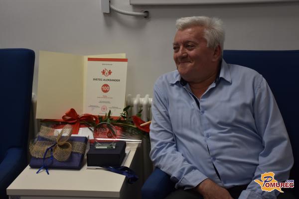 Aleksander Svetec iz Gornjih Petrovcev je danes v Enoti za transfuzijsko dejavnost (ETD) Murska Sobota, ki deluje pod okriljem Centra za transfuzijsko medicino UKC Maribor, daroval kri že stotič.