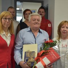Obiskali so murskosoboško bolnišnico, kjer je Aleksander Svetec danes že stotič daroval kri.
