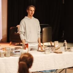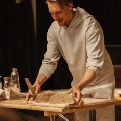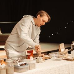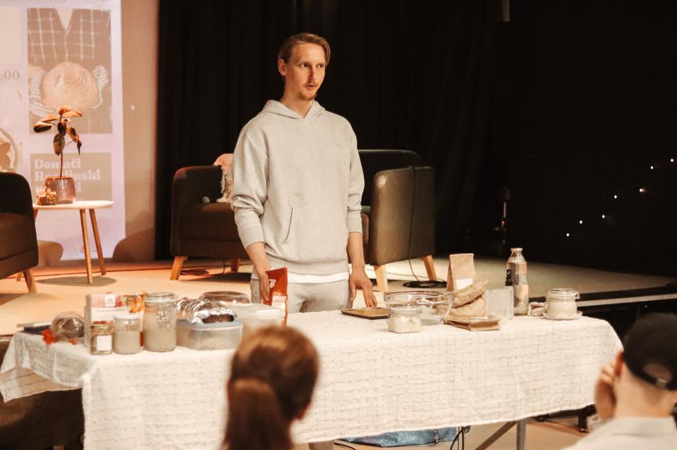 Nino Irgolič, mladi podjetnik, je prikazal postopek priprave polnozrnatega kruha z drožmi, medtem ko se je Suzana Simenčič, NPK aromaterapevtka in skrbnica aromatičnega vrta, osredotočila na brezglutensko peko.