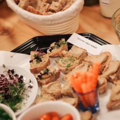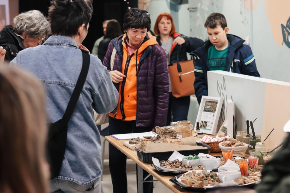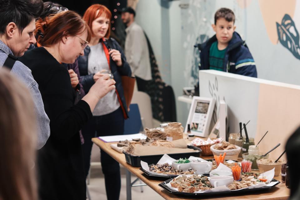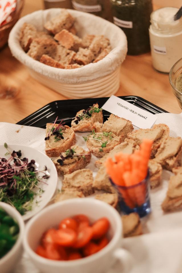 Ob pokušini sveže pečenega kruha so imeli udeleženci priložnost preizkusiti tudi različne rastlinske namaze. Suzana in Nino sta predstavila recepte ter razložila, kako pripraviti okusne in hranljive namaze iz naravnih sestavin. Poleg tega so prisotni prejeli tudi pisne recepte, da jih bodo lahko preizkusili doma in jih vključili v svojo prehrano.