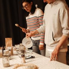Oba sta izpostavila pomen fermentacije, vpliv različnih vrst moke ter praktične trike za uspešno peko. Udeleženci so spoznali koristi naravno pripravljenih pekovskih izdelkov brez industrijskih dodatkov ter načine, kako prilagoditi recepture svojim prehranskim potrebam.