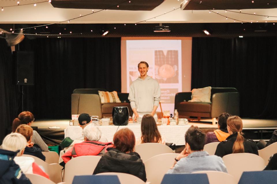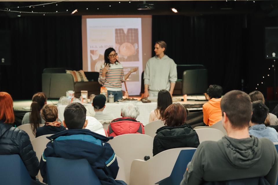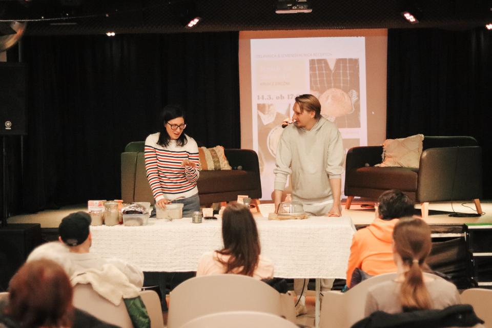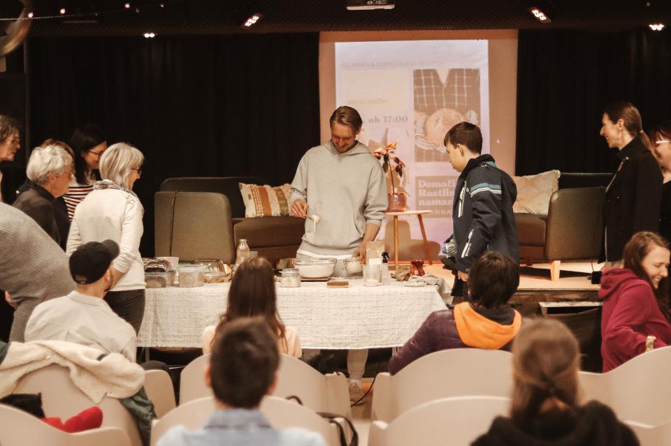 V Mladinskem centru Gornja Radgona je potekala praktična delavnica "Kruh za zdravje & rastlinski namazi", kjer sta Suzana Simenčič in Nino Irgolič udeležencem predstavila celovit vpogled v peko kruha z drožmi ter pripravo zdravih rastlinskih namazov.