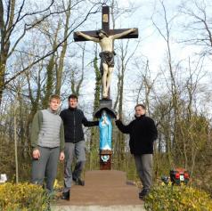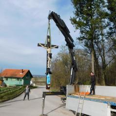 Za odstranitev dotrajanega križa so poskrbeli gasilci PGD Bogojina. Štefan Puhan in Matej Štefko iz Bogojine sta združila moči pri postavitvi novega križa. Puhan je poskrbel za obnovo nabožnih podob Jezusa in Marije ter pobarval podstavek, kjer novi križ stoji. Pri obnovi je uporabil akrilne barve, na koncu pa je vse polakiral, da bi zagotovo zdržalo vsa vremenska nihanja.