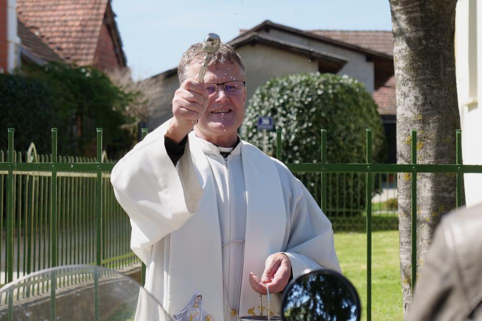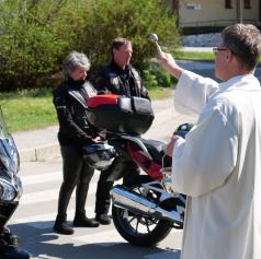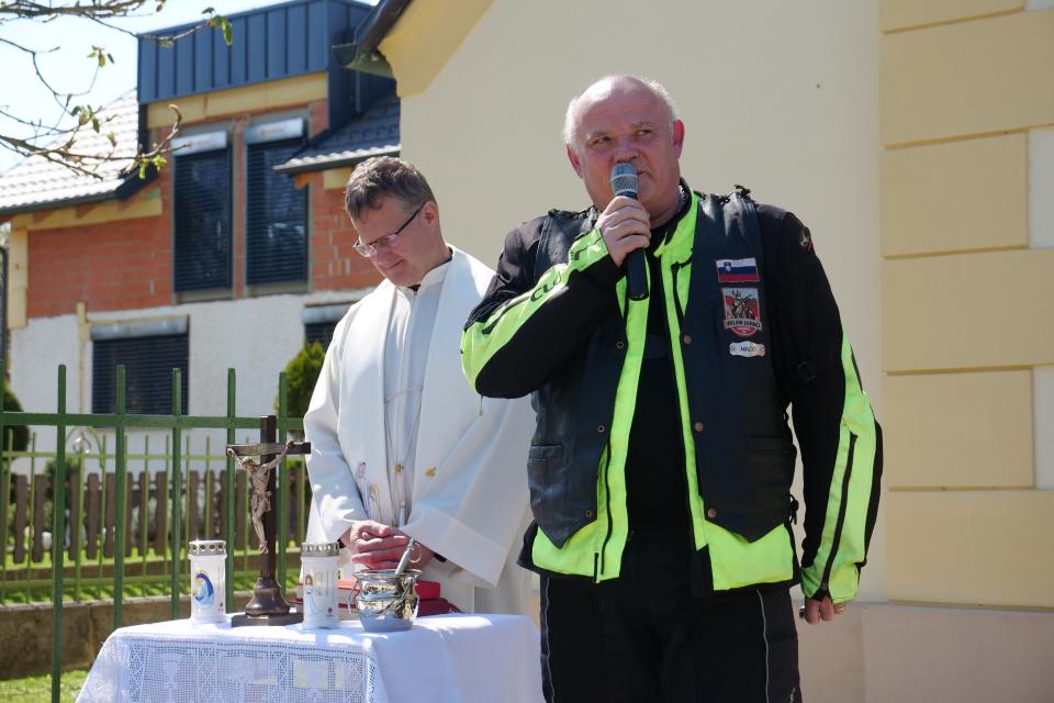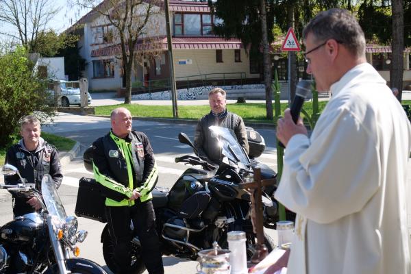Zbrani motoristi so svoje jeklene konjičke parkirali pred župnijsko cerkvijo sv. Ane, kjer jih je sprejel bakovski župnik dr. Franc Zorec. S kratkim nagovorom in molitvijo je blagoslovil motorje, motoristke ter motoriste, vsem pa zaželel srečno in predvsem varno vožnjo v prihajajočih mesecih.
