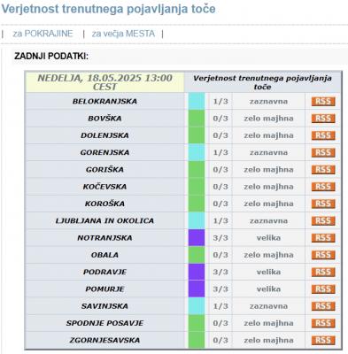 Po opozorilih meteorologov obstaja zelo velika verjetnost toče, zlasti na območju Podravja in Pomurja.