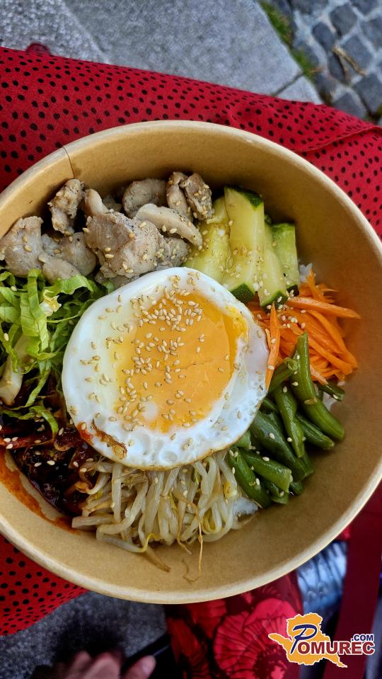 Z vintage torbami na ramenih smo zavili proti Pogačarjevemu trgu, kjer se je ravno odvijal Asia Fest. Stojnice so ponujale ulično kulinariko z vseh koncev Azije – japonski ramen, tajski pad thai, vietnamski bánh mì, korejski kimchi … Vse to ob glasbi, ki je mešala tradicionalne melodije z modernejšim utripom. Ljudje so se smejali, čakali v vrstah, sedeli po robnikih in stopnicah ter jedli z rokami, palčkami ali kar z nasmeškom.