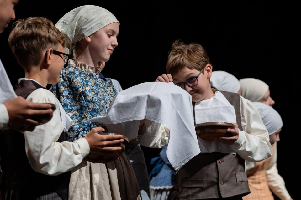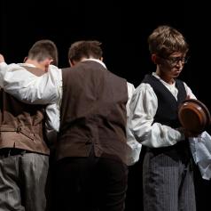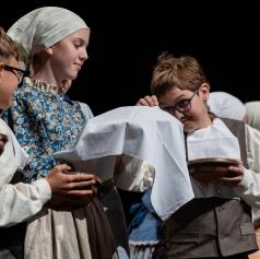 Postavitev »S povitico hitro f peč«, ki jo je zasnovala mentorica Mateja Žalik Rus, temelji na znani ljudski pesmi Peci, peci se potica. Dekleta so ob petju prikazala celoten postopek priprave potice, od mešanja testa do peke. V zaključku so se jim pridružili še fantje in skupaj so zaplesali v veselju ob pričakovanju sladice.