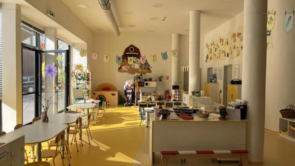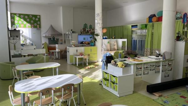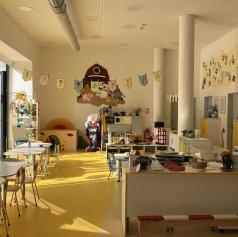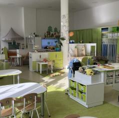 Igralnice so prostorne in svetle, na stenah prevladuje dekoracija, medtem ko je otroških izdelkov razmeroma malo. Vsaka igralnica je opremljena z velikim TV zaslonom, ki ga uporabljajo za predvajanje pesmi in uspavank. Delo poteka predvsem neusmerjeno, kar pomeni, da se otroci samostojno odločajo, ali bodo sodelovali pri določeni dejavnosti. Zaradi tega pogosto prehajajo med dejavnostmi.