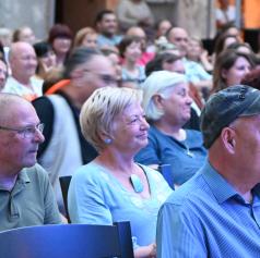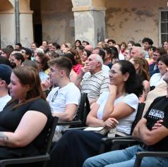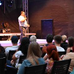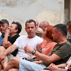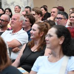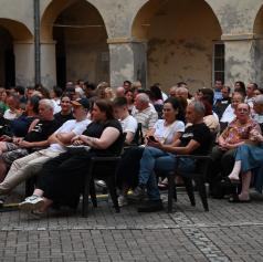 V ponedeljek, 23. junija 2025, se je grajsko dvorišče prelevilo v središče pristnega humorja, kjer so obiskovalci doživeli enega najbolj zabavnih poletnih večerov.