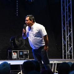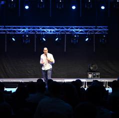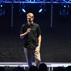 Vid Valič, komik, igralec in televizijski voditelj, ki že osemnajst let navdušuje slovensko publiko, je tudi tokrat pokazal, zakaj ostaja ena najbolj prepoznavnih in priljubljenih osebnosti domače stendap scene. Njegov prepoznavni slog, poln domiselnih domislic in izpiljenih nastopov, je poskrbel za salve smeha in sproščeno vzdušje.