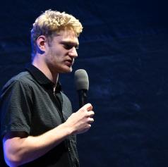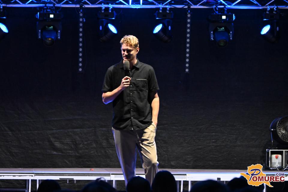 Ob njem sta nastopila še dva perspektivna komika mlajše generacije. Aljaž Poredoš, znan po svojem značilnem črnem humorju in navdušenju nad nogometom, je publiko presenetil z ostrimi, a iskrenimi šalami iz vsakdanjega življenja.