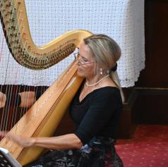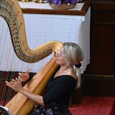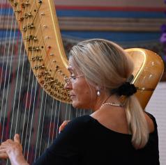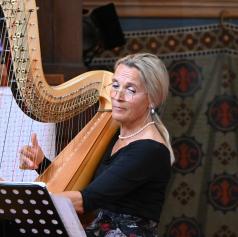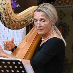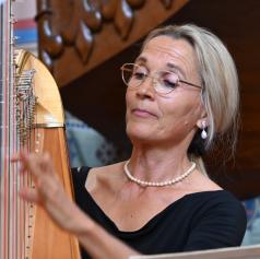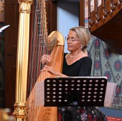 Mojca Zlobko Vajgl, ena najvidnejših slovenskih harfistk z mednarodno kariero, je z eteričnimi zvoki harfe ustvarila prostor brezčasne lepote. Njena interpretacija je razkrivala bogato paleto občutij – od nežne lirike do dramatičnih vrhuncev – in poslušalce popeljala skozi razgibane glasbene pokrajine.