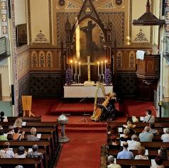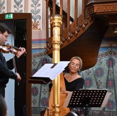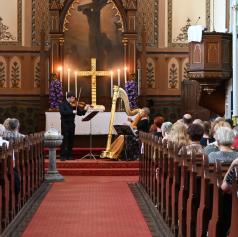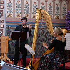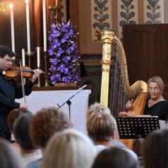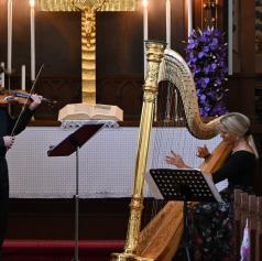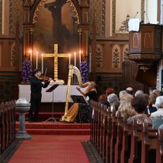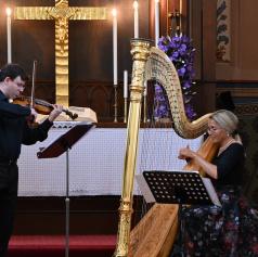 FOTO in VIDEO: Čaroben glasbeni večer harfe in violine v evangeličanski cerkvi