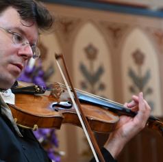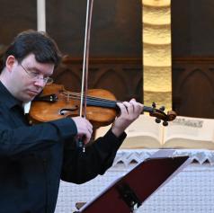 Ob njej je Žiga Brank, mojster violinske fraze in tonalne prefinjenosti, s svojo navdihujočo igro dopolnjeval zvočno sliko večera. Njegova izjemna tehnična spretnost in globoko čustveno razumevanje glasbe sta ustvarila magično vez s harfo, ki je občinstvo očarala in poglobila glasbeno doživetje.