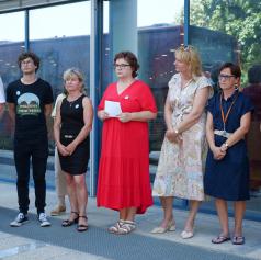 V Murski Soboti se je danes pred Pokrajinsko in študijsko knjižnico zbralo vodstvo sindikata Glosa, ki je na novinarski konferenci ostro pozvalo direktorico knjižnice Klaudijo Šek Škafar k umiku kazenske tožbe proti sindikalni zaupnici Suzani Lukovnjak. V sindikatu opozarjajo, da gre za nevaren napad na sindikalne pravice in zastrašujoč precedens.