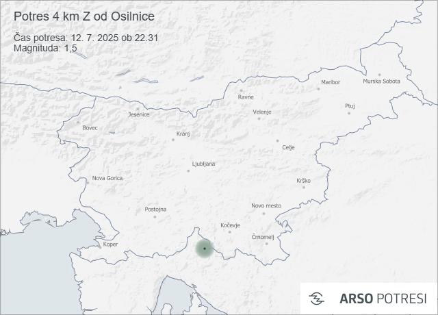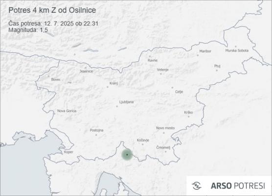 V soboto, 12. julija, ob 22.31 po lokalnem času so seizmografi državne mreže potresnih opazovalnic zabeležili šibek potres.