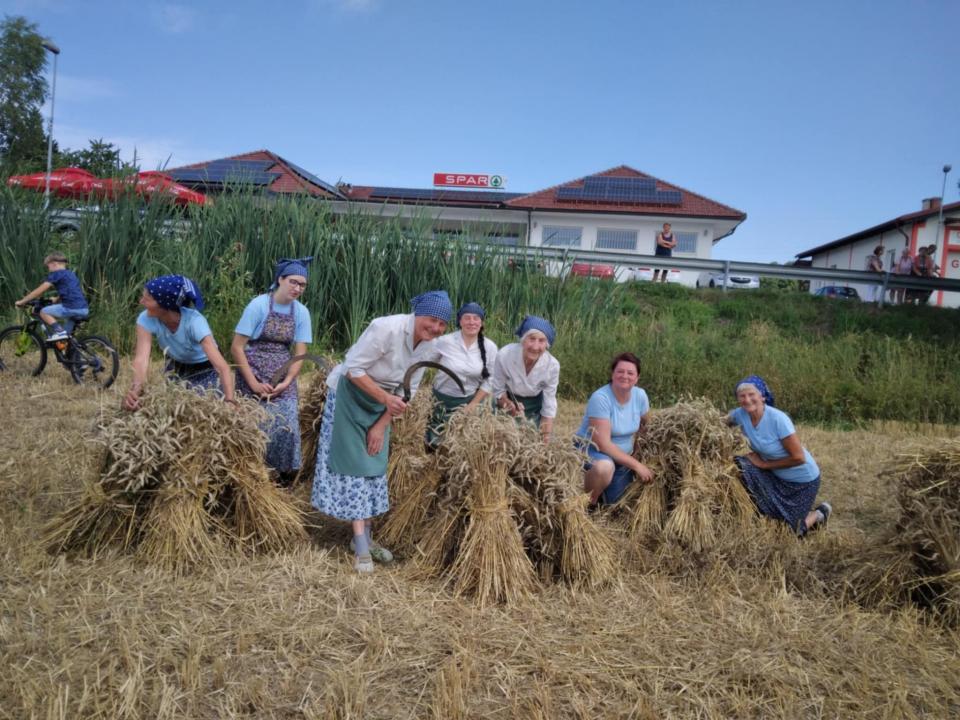 Društvo podeželskih žena Gornja Radgona je na Spodnji Ščavnici pripravilo prikaz tradicionalne žetve, kjer so obiskovalci lahko znova podoživeli čase, ko je bilo delo na polju skupnostno in prežeto s številnimi običaji.