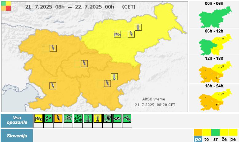 ARSO opozarja, da so danes popoldne in zvečer možna krajevna neurja. Vsem, ki se bodo odpravili na prosto, svetujejo previdnost – spremljajte vremenska opozorila in se ob prvih znakih nevihte umaknite na varno.
