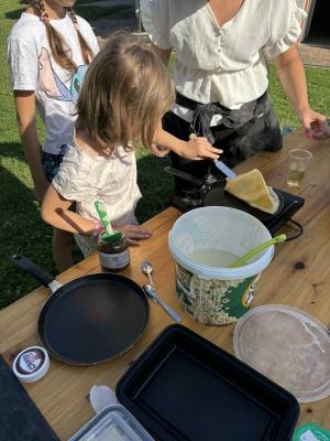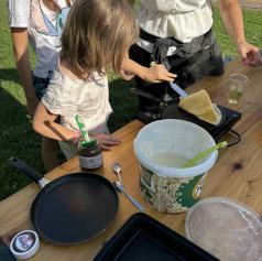 Del programa je bil namenjen tudi pripravi skupnih obrokov. Prvi dan so otroci uživali v hot dogih, drugi dan pa z veseljem zavihali rokave in sami pripravili ter spekli pizze, pri čemer so pokazali veliko ustvarjalnosti in sodelovanja.