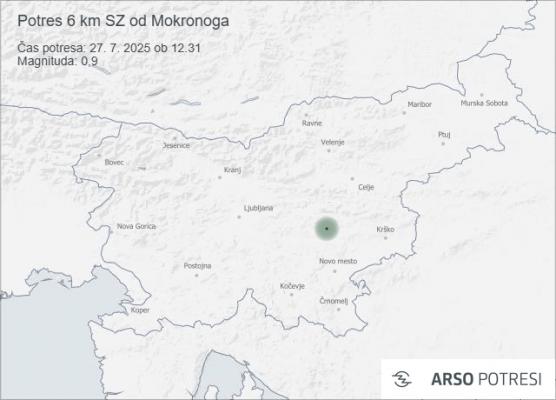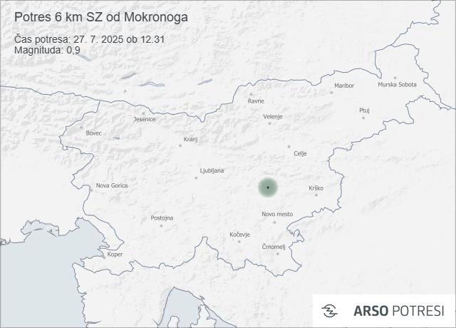 Včeraj, 27. julija, je Slovenijo dvakrat zazibal potres, oba z manjšima magnitudama in brez poročil o škodi ali poškodbah. Potresa so zabeležili v osrednjem delu države, natančneje v okolici Mokronoga in Sevnice.