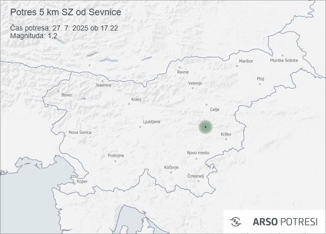 Drugi potres popoldne pri Sevnici
