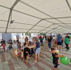 FOTO: Kljub dežju veselo otroško dogajanje na Glavnem trgu v Ljutomeru