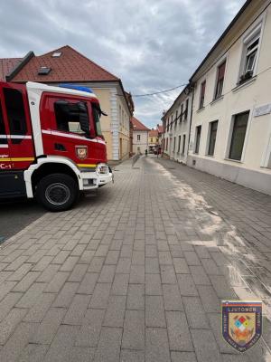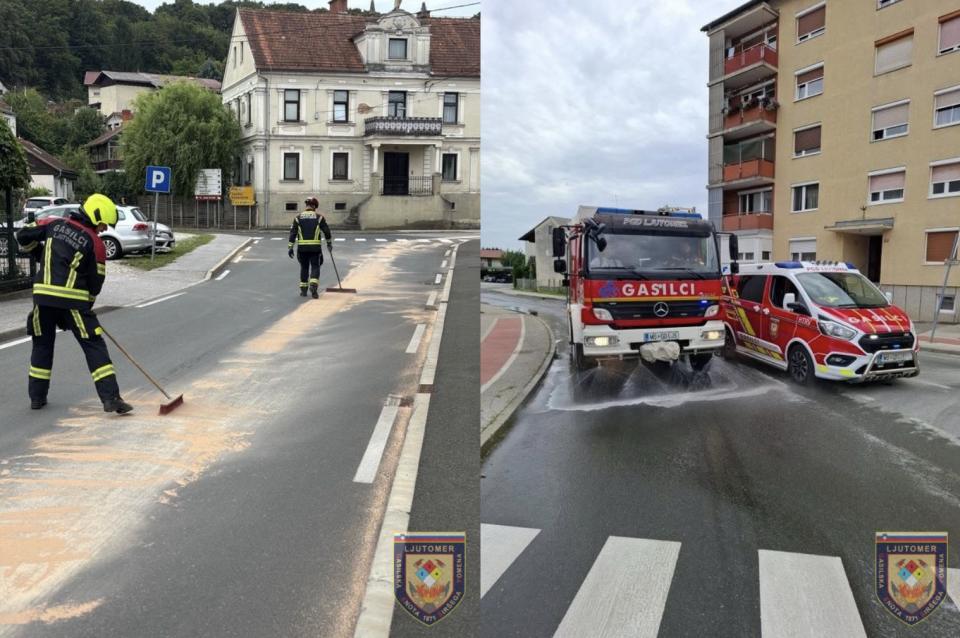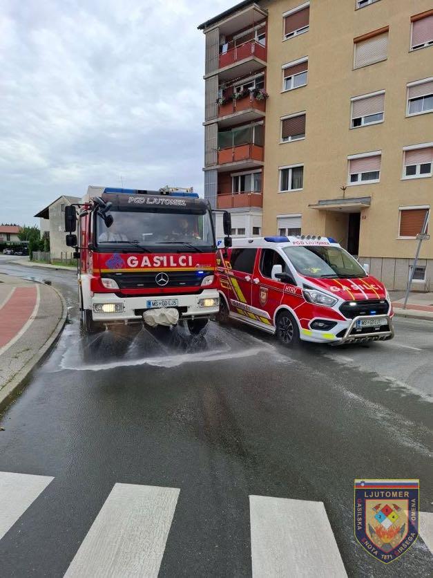 FOTO: Po cestišču v Ljutomeru prišlo do razlitja nevarne snovi