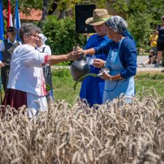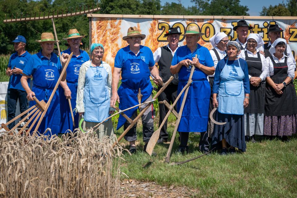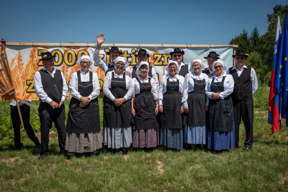 Na slikoviti njivi ob poti proti Bukovniškemu jezeru se je minulo nedeljo, 20. julija, odvila že tradicionalna prireditev »Žetev 2000 zlatih zrn za naslednje tisočletje«, ki je tudi letos uspešno povezala kmetijsko dediščino, kulturni utrip kraja in sodobne trajnostne prakse.