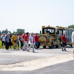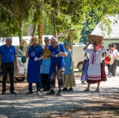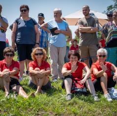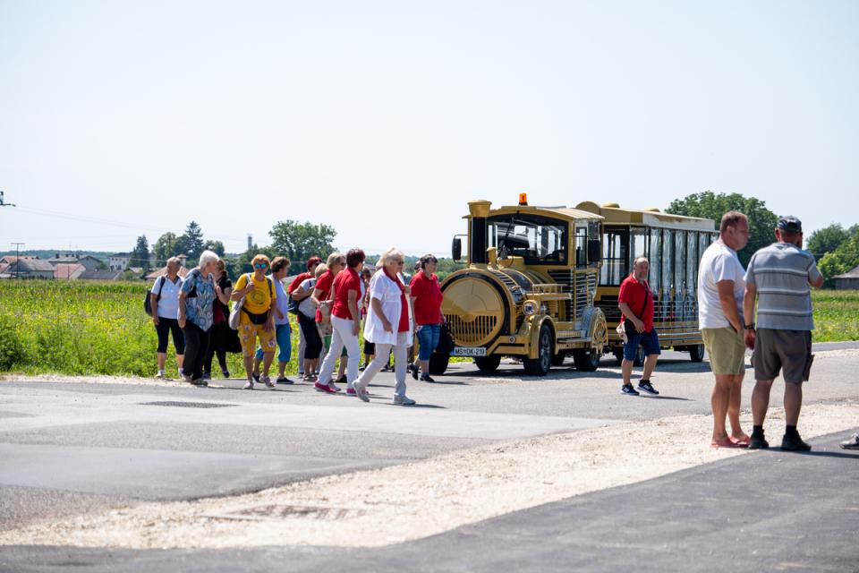 Posebno doživetje je bil prevoz na prizorišče žetve s turističnim vlakom, ki je marsikateremu udeležencu pričaral nasmeh in občutek, da se vrača v čas svojih prednikov.