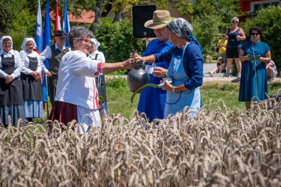 Na polju so udeleženci lahko simbolično sodelovali pri ročni žetvi pšenice, kot so to nekoč počeli naši predniki. Pred začetkom dela je strokovna komisija izbrala največji klas, v katerem so našteli kar 76 zrn – rekord dosedanjih žetev.