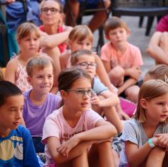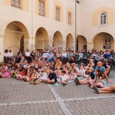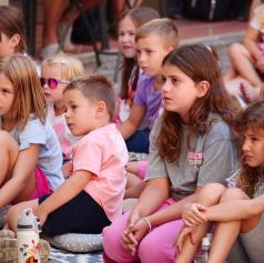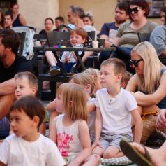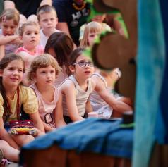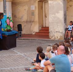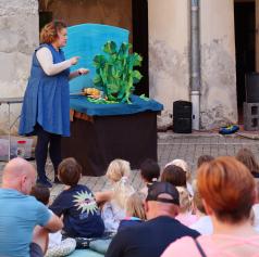 Danes je Grajsko dvorišče zaživelo v otroškem smehu in domišljiji, ko je Hiša otrok in umetnosti uprizorila predstavo Štirje letni časi. Režiserka in idejna snovalka Irena Rajh je v sodelovanju z igralko in animatorko Vanjo Ivo Kretič občinstvu predstavila del čarobnega kolaža zgodb, ki temeljijo na slikanici priznane hrvaške ilustratorke Pike Vončine.