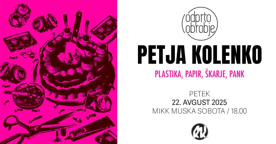 V Murski Soboti bo ob 18. uri v MIKK-ovi galeriji odprtje razstave Petje Kolenko »Plastika, papir, škarje, pank«. Zvečer bo sledil glasbeni dogodek Nindri indri 2025, ki se bo začel ob 19. uri.