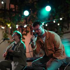Katarina Šebök & Žiga Žekš, uigran duet, je s prepletom vokala in kitare ustvaril intimno akustično vzdušje. S širokim repertoarjem slovenskih in tujih uspešnic sta poskrbela za trenutke, ko se je čas ustavil ob nežnih baladah, pa tudi za ritme, ki so obiskovalce dvignili na noge.