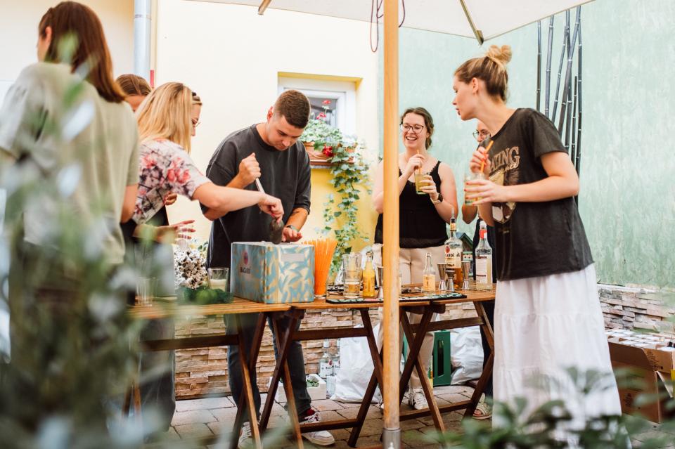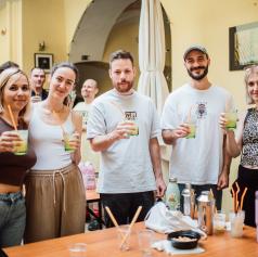 Popoldne ob 17. uri so udeleženci zavihali rokave na koktajl delavnici. Pod strokovnim vodstvom Reneja iz Rolling Bara so se naučili osnov miksologije in pripravili štiri klasične koktajle na osnovi ruma. Ob prijetnem druženju so imeli vsi priložnost okusiti lastne kreacije. Prijavnina je pokrila sestavine, število mest pa je bilo omejeno, kar je poskrbelo za intimno in poučno vzdušje.