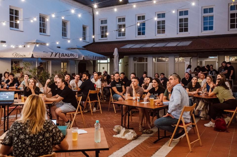 Ob 20. uri je sledil pubkviz, ki je atrij Mestne hiše spremenil v prizorišče tekmovanja znanja, humorja in ekipnega duha. Skupine po štiri člane so se spopadle z vprašanji iz desetih različnih tematik, ki so segale od splošne razgledanosti do bolj nenavadnih znanj. Vzdušje je bilo sproščeno in polno smeha, zmagovalna ekipa pa si je prislužila zanimive praktične nagrade.