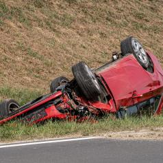 FOTO: Zapeljal iz vozišča in se prevrnil na streho