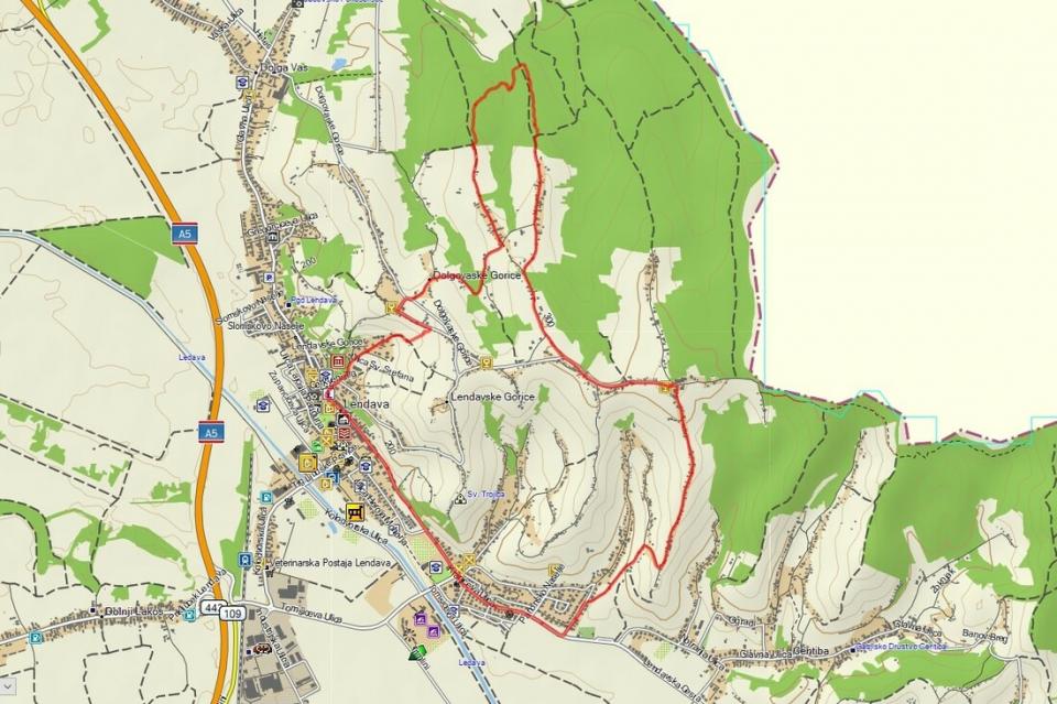9,9 km dolga krožna pot v Lendavskih goricah se začne pri Treh izvirih in obiskovalce vodi mimo številnih vodnjakov in izvirov. Pohodniki se povzpnejo do stolpa Vinarium in Piramide, najvišje točke Lendavskih goric, od koder se odpre panoramski razgled na ravnico, Pohorje, Boč, Donačko goro in Ivanjščico na Hrvaškem.