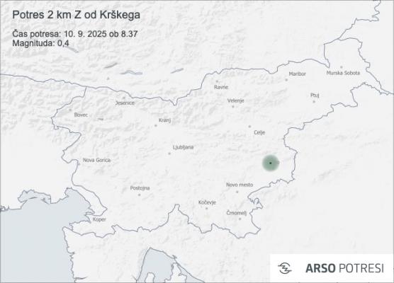 Danes, 10. septembra 2025, je bil ob 8.37 zabeležen potres s šibko magnitudo 0,4. Nadžarišče potresa je bilo locirano 2 kilometra zahodno od Krškega.