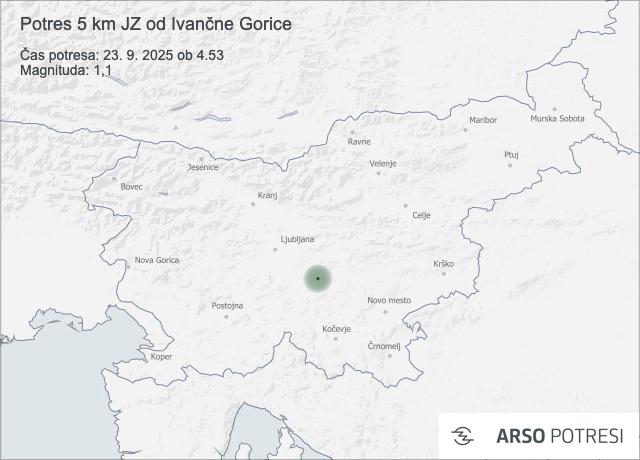 V torek, 23. septembra 2025, ob 4.53 po lokalnem času je bil zabeležen šibek potres z nadžariščem približno 5 kilometrov jugozahodno od Ivančne Gorice. Po podatkih samodejne analize je imel potres magnitudo 1,1 in je nastal na globini 16 kilometrov.