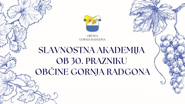 Vrhunec praznovanja bo Slavnostna akademija ob 30. prazniku Občine Gornja Radgona, ki bo v sredo, 1. oktobra 2025, ob 18. uri v Domu kulture Gornja Radgona.