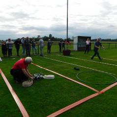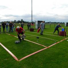 Organizatorji so pripravili štiri športne igre, povezane z gasilstvom. Ekipe, sestavljene iz štirih tekmovalcev različnih društev, so se pomerile v prenosu vode, prenosu vedrovke (s poudarkom na pravilni uporabi pri gašenju različnih požarov), metu vrvi v cilj ter spajanju treh cevi na trojak.
